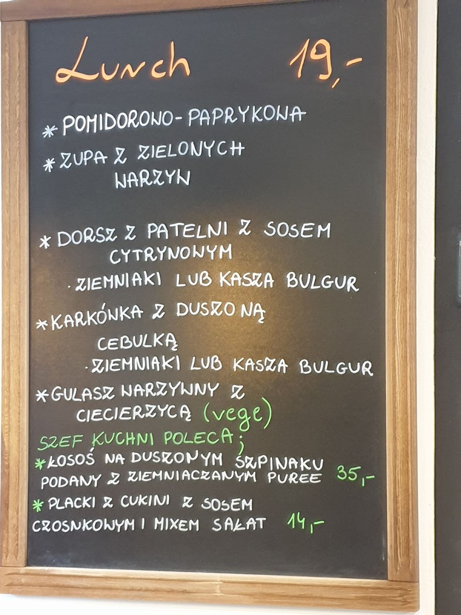 “ Dobre jedzenie, świeże i duże porcje. Ceny też ok. Mój schabowy był bardzo dobry, świeże ziemniaczki i super surówki. Ryż tajski mniej smakował, ryż był posklejany. Zupa cebulowa dobra, bez szału. Do tego kompot. ”
